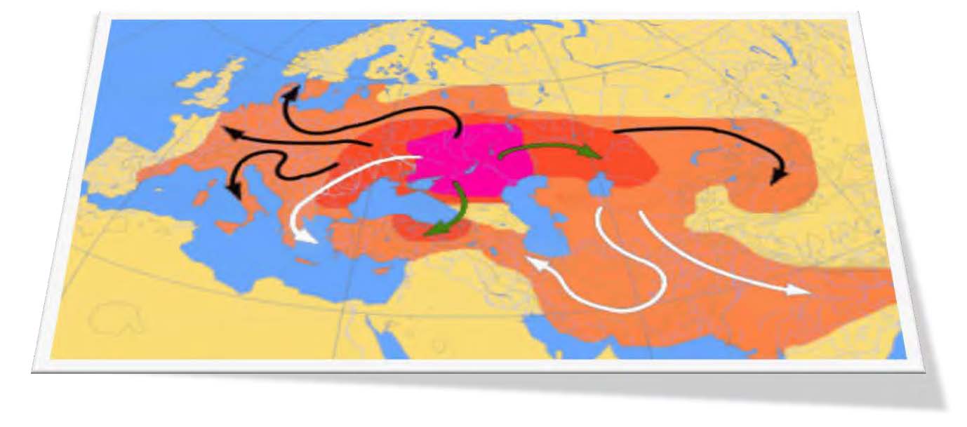 | 70-1950 dC. Judíos en la diáspora desarrollan | Expansión de las civilizaciones indoeuropeas |