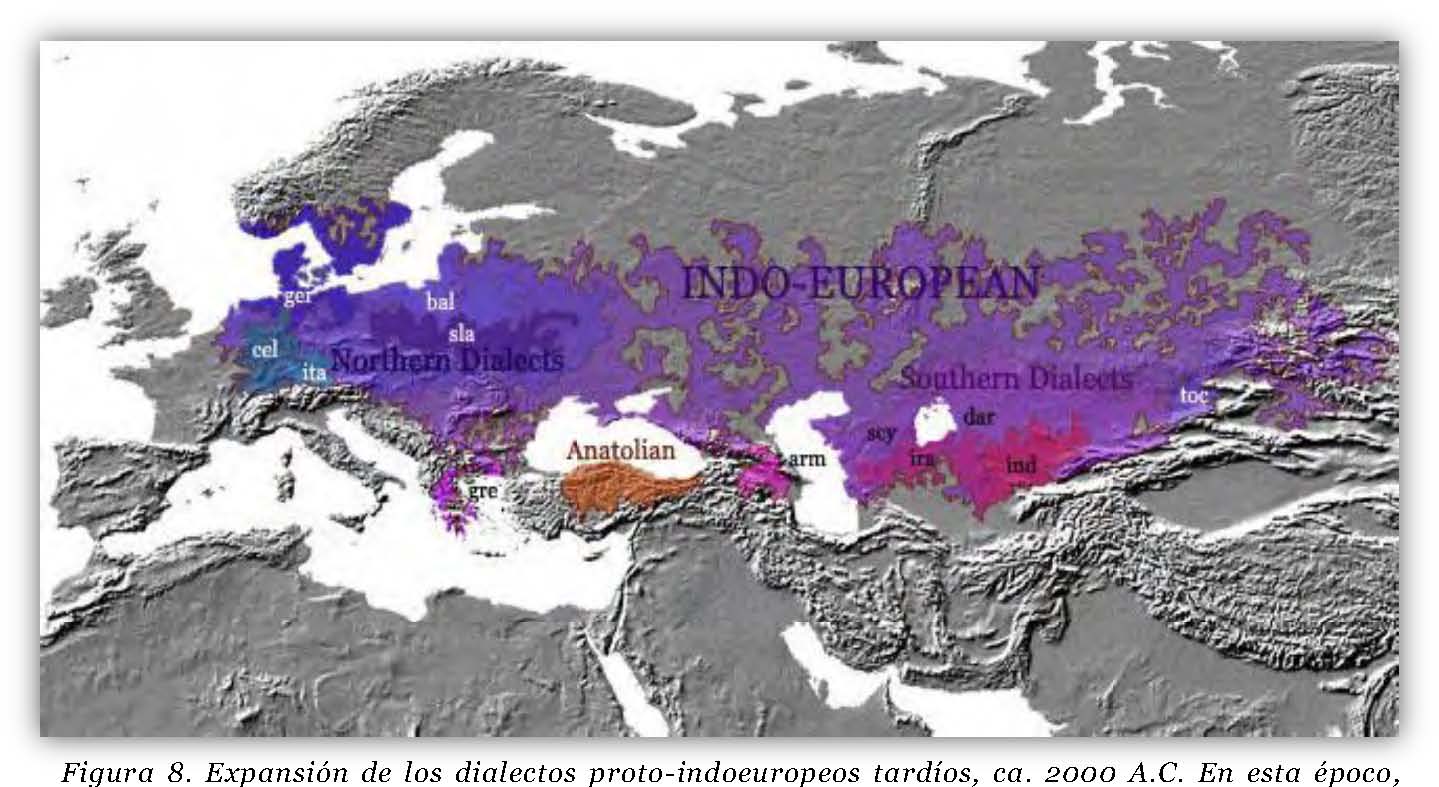 | ca. 1000 adC: La primera evidencia escrita de | ca. 2000 adC. Los dialectos IE septentrionales se |