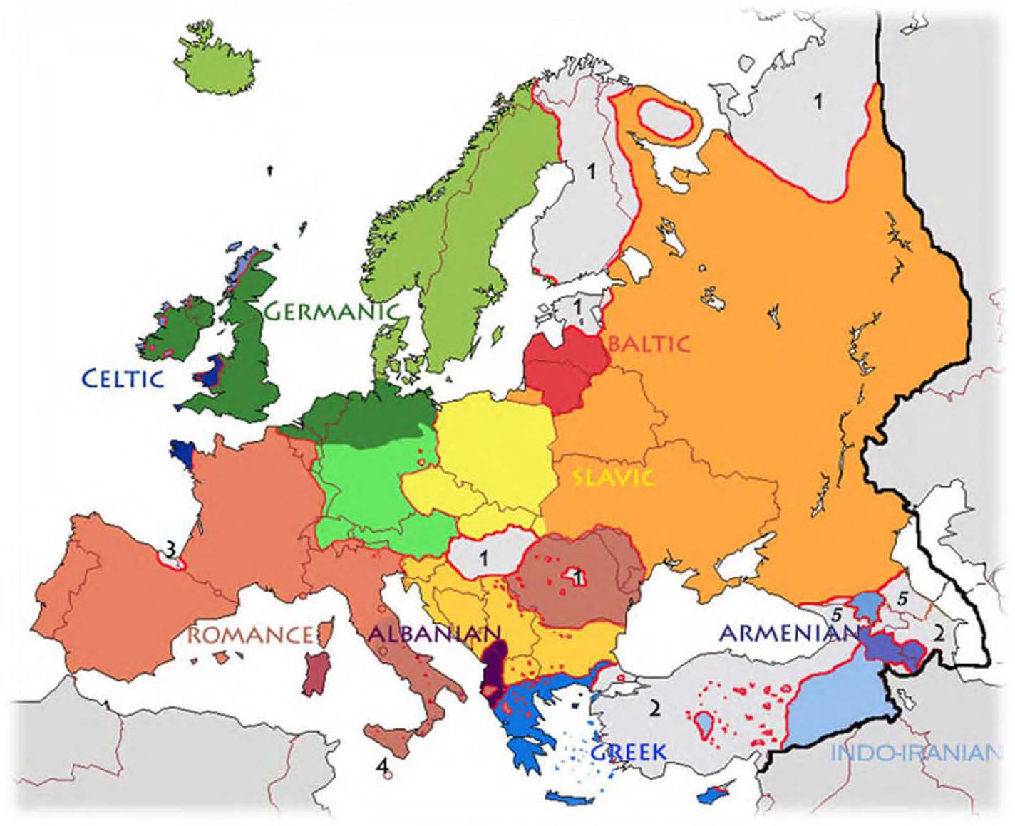 NOTE 4. Para el adjetivo ―europeo‖, compárense derivados del a.gr. europai-os -> gr.mod. europai-kós (IEM europa-ikós) o del lat. europae-us-> lat.m. europé-us, que da a su vez It., Spa. europeo, Pt., Cat. europeu; del latín tardío europé-(< IE europái-) son los extendidos *europe-is (IEM europái-is), como nee. europees; del extendido *europe-anos (IEM europái-anos) son rum. europene, o fr. européen (en ing. european); extendido *europe-iskos (IEM europái-iskós) da las formas comunes germanas y eslavas (cf. al. Europäisch, fris. europeesk, esc. europeisk, pl. europejski, eslavo evropsk-, etc.); otras formas extendidas ir. Eorpai-gh, lit. europos, let. eiropa-s, etc. Para europeo como nombre, compárese, de *europé-anos, nee., fris. europeaan, de *européeros, al. Europäer, el étnico *europé-ikos, esl. evropejk-, etc.