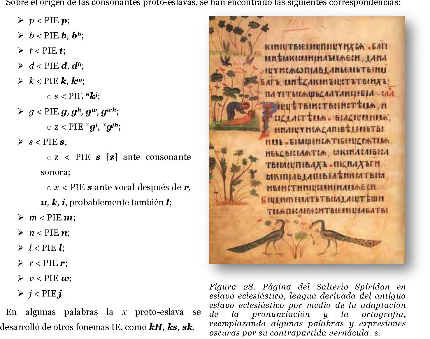 , l, m, n, u, i) y H una laringal (o s). Según Meillet, combinaciones IE imposibles son sorda/aspirada (como en *teubh o *bheut), así como sonora/sorda (como en *ged o *deg). La siguiente tabla muestra la opinión general: