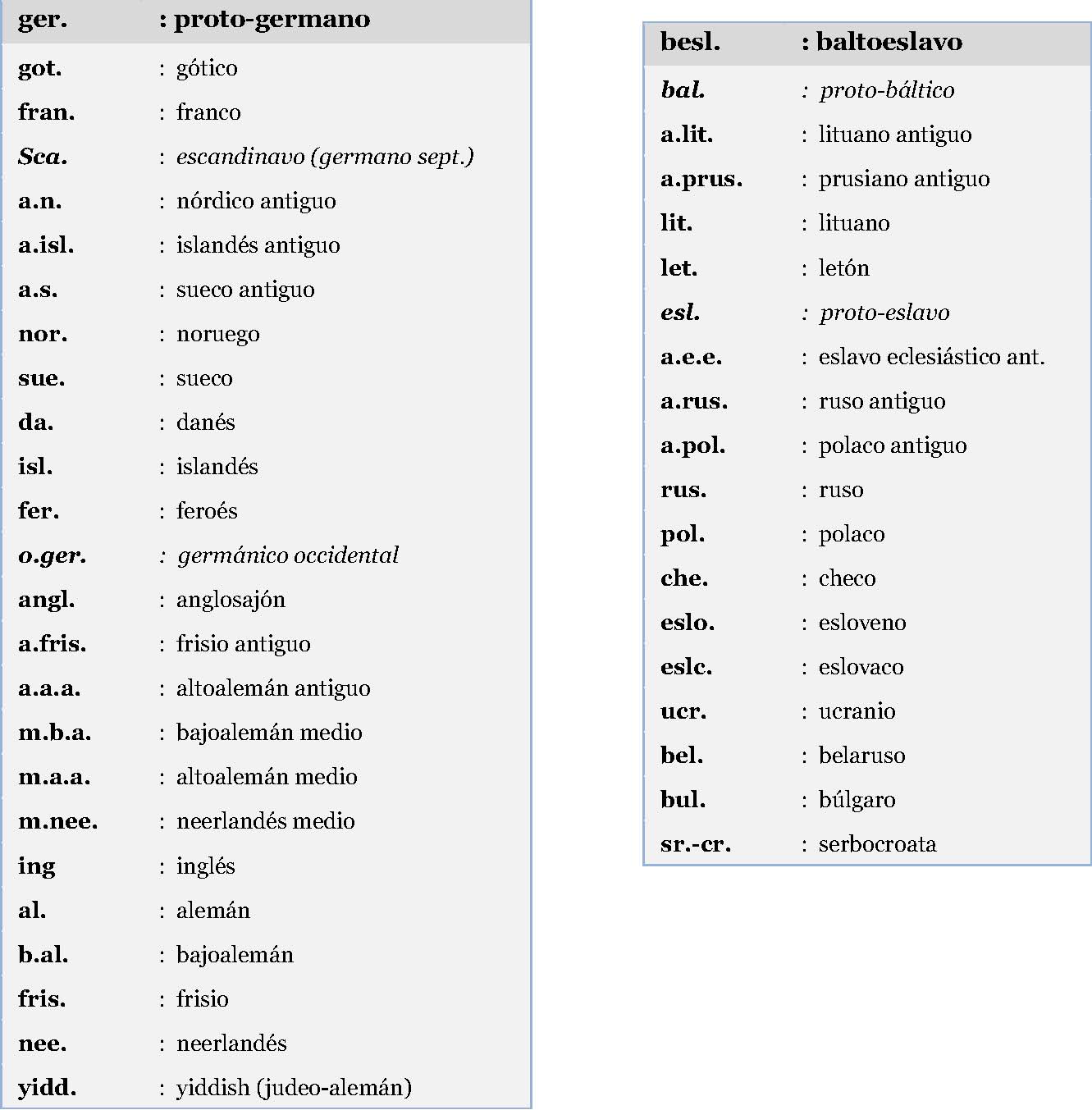 En otras lenguas, sin embargo, el adjetivo para la lengua acompaña al nombre ―lengua‖, y su género concuerda por lo tanto con éste; cf. lat. f. latīna lingua, o ejemplos eslavos3; de ahí el IEM eurōpai dńghūs o eurōpai dńghwā, lengua europea.